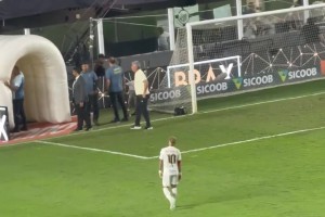 内马尔赛后离场时捂住耳朵,不想听到桑托斯球迷的嘘声