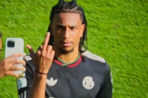 赛后穆西亚拉找奥利塞合影时遭怒送中指